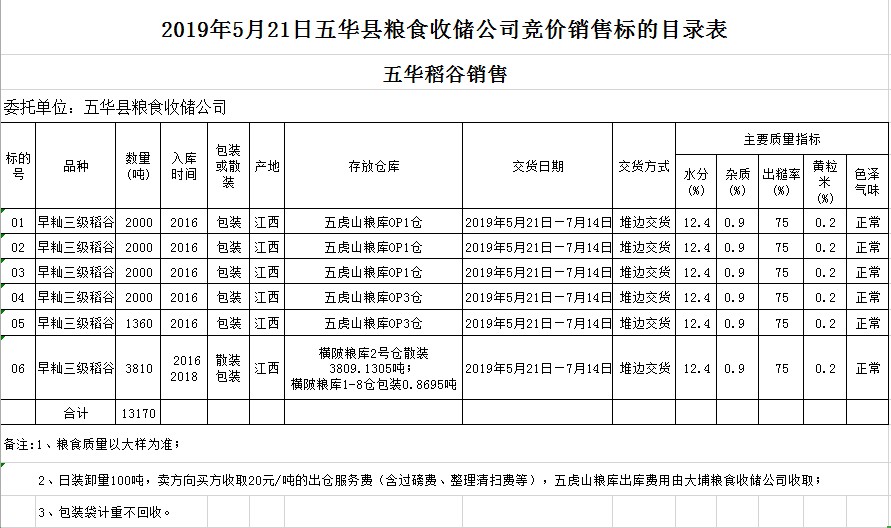 受客戶委托,梅州市嘉應(yīng)糧食交易中心有限公司定于2019年5月21日(星期二)舉辦糧食競(jìng)價(jià)交易會(huì),廣東省五華縣糧食收儲(chǔ)公司擬銷(xiāo)售2016年早秈稻13169.1305噸,2018年早秈稻0.8695噸。
