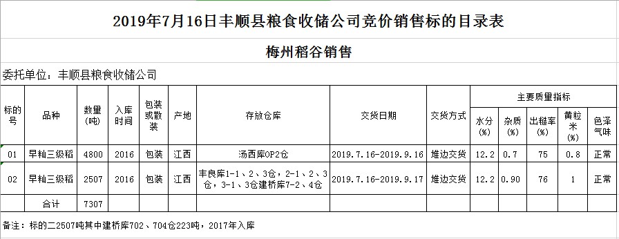 受客戶委托,梅州市嘉應(yīng)糧食交易中心有限公司定于2019年7月16日(星期二)舉辦糧食競價(jià)交易會(huì),豐順縣糧食收儲(chǔ)公司擬銷售2016年早秈稻7084噸2017年早秈稻223噸。