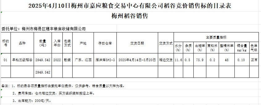 2025年4月10日梅州市梅縣區(qū)穗豐糧食收儲(chǔ)有限公司稻谷銷售
